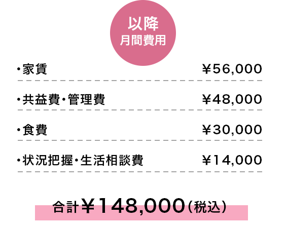 ※弊社は水道光熱費、日常生活費等は基本的にかかりません。