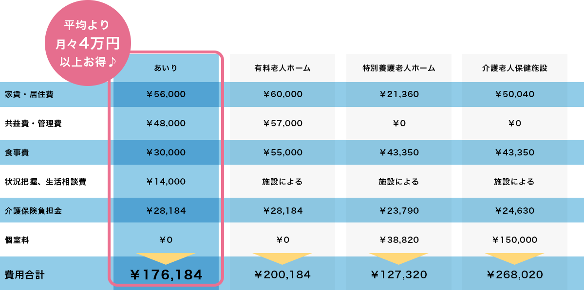 ※介護保険に掛かる加算、日常生活費等は含まれていません。